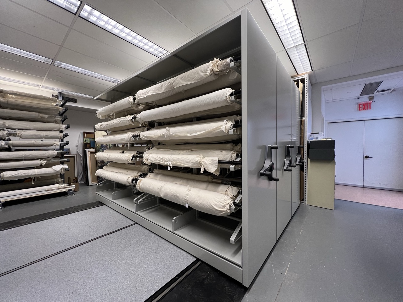 Montel’s rolled textile storage systems are designed to support long-term textile preservation in museums, archives, and specialized collections. By eliminating folds and reducing stress on fibers, these systems protect delicate items like flags, rugs, banners, and quilts while optimizing available space.