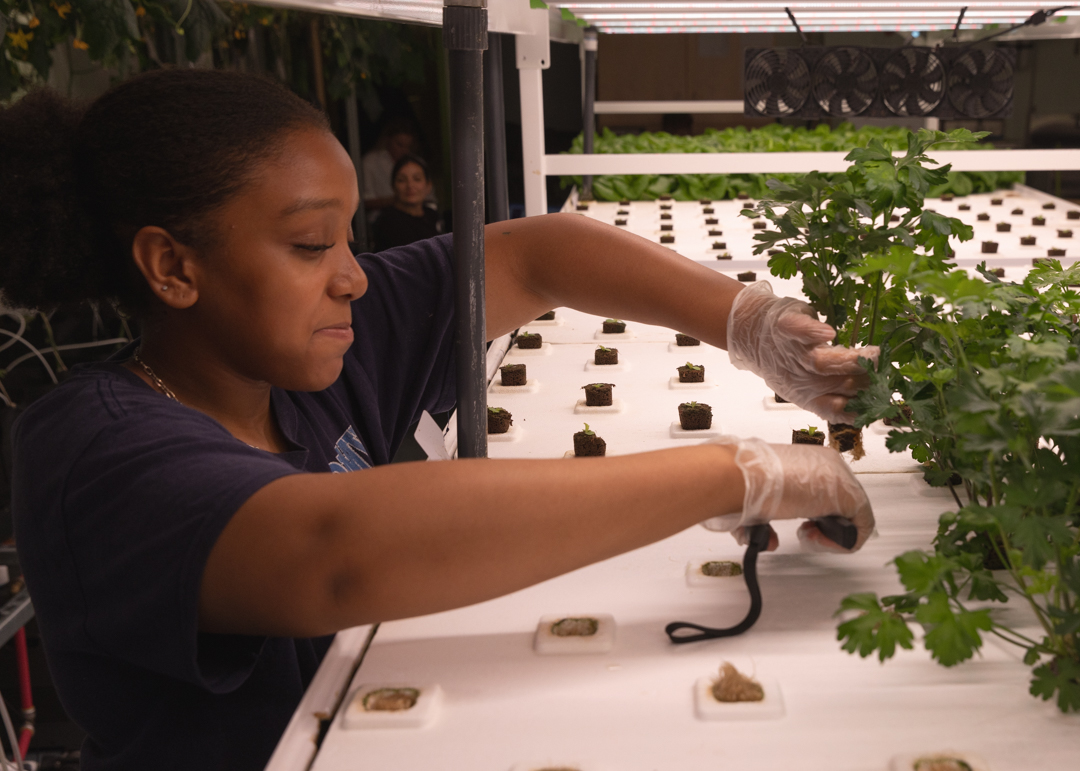 The system is intuitive and safe — students as young as 11 can jump right in, move the racks easily, and feel empowered to be farmers.
